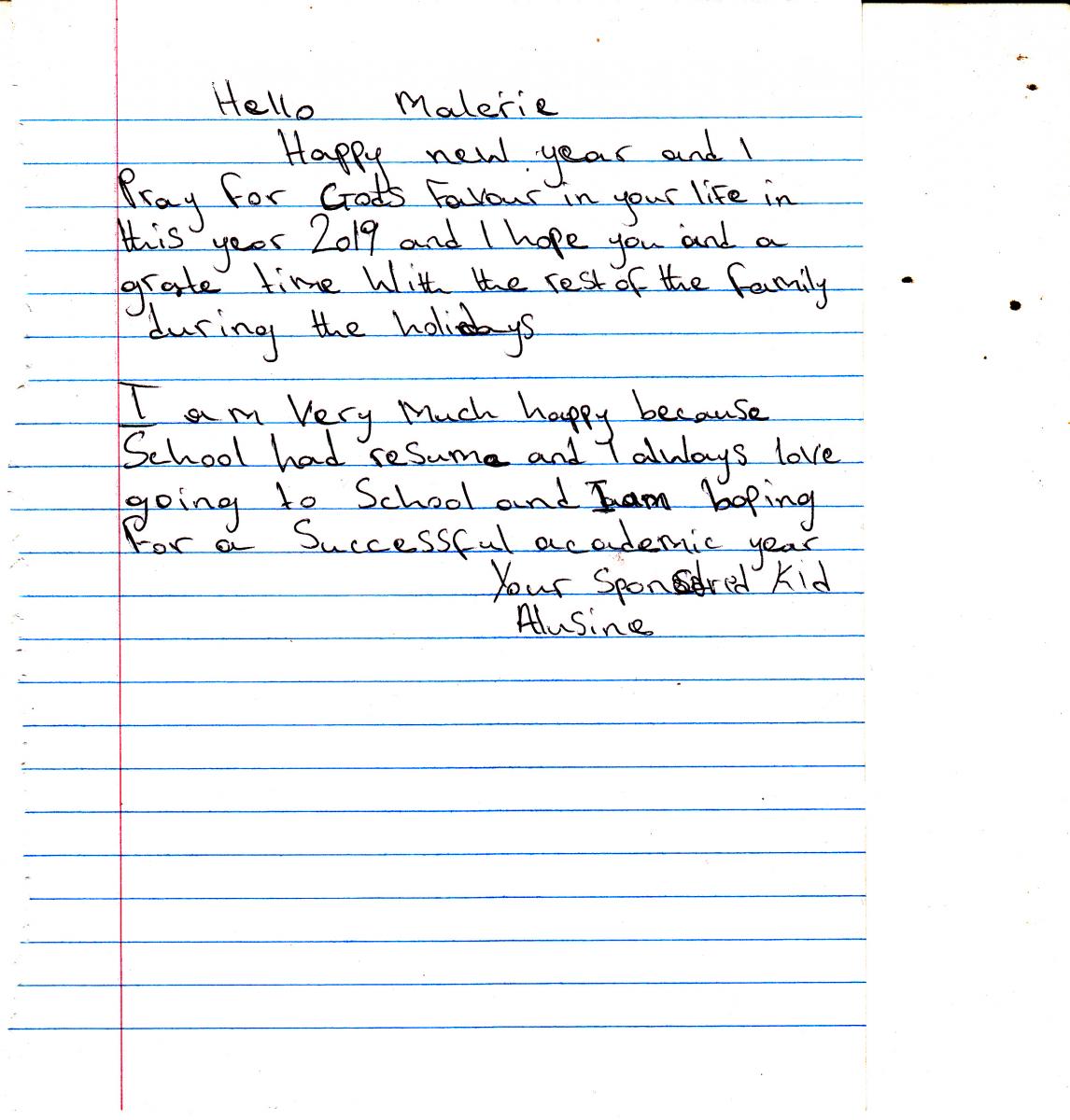 This Child Sponsorship Update gives you a look into the relationship/communication between children and their sponsors. This letter is from Alusine to his sponsor.