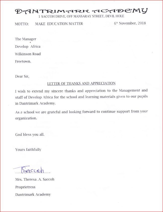 The Dantrimark Preparatory School in Sierra Leone was delighted to receive school supplies thanks to your generous support.