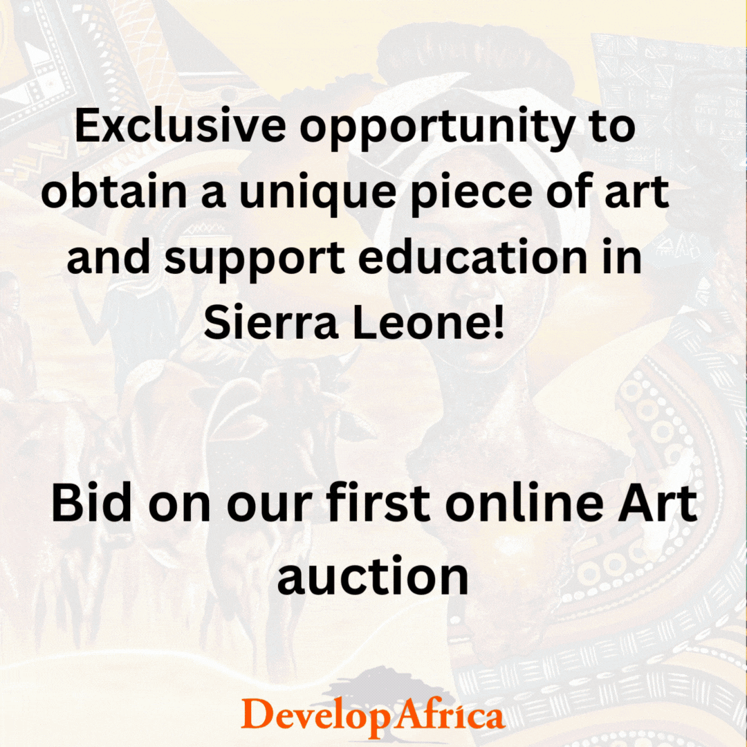 Through this online silent auction, you can bid on one-of-a-kind pieces that beautifully capture the essence of Sierra Leone’s culture and landscape, knowing that 10% of the proceeds from each sale will go directly to Develop Africa’s educational initiatives.